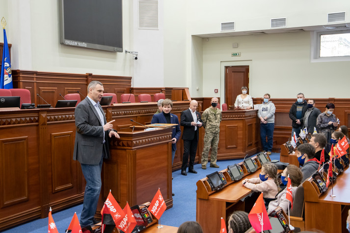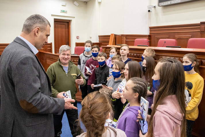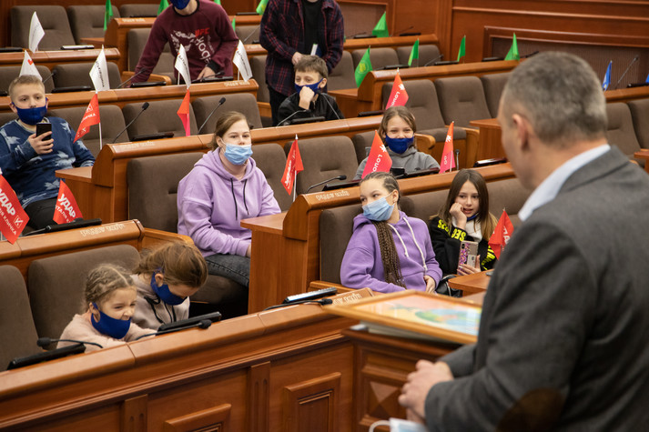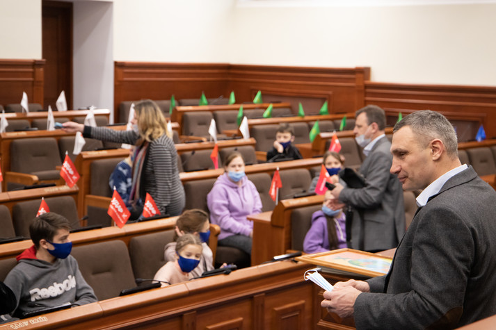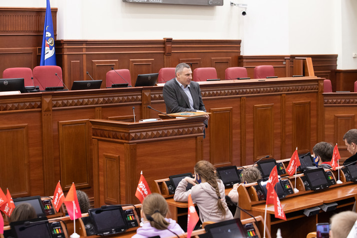 Кличко поспілкувався з дітьми, показав їм, як працюють депутати в сесійній залі Київради, розповів про свої улюблені пам’ятки столиці та нові інфраструктурні об’єкти, про спортивне минуле та роботу в українській політиці. Про це повідомляє пресслужба Київської міської держадміністрації.