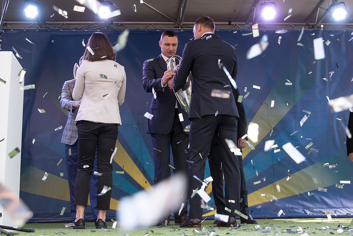 Кубок, який отримає чоловіча футбольна команда, Кличку вручив Амбасадор фіналу Ліги чемпіонів УЄФА в Києві, головний тренер збірної України з футболу Андрій Шевченко