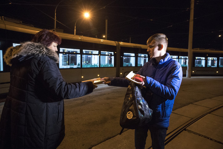«Василь водить трамвай уже 5 років, Олена – 2. Вони віддано люблять свою роботу. І вкладають в неї і свої сили, і душу. Поки місто ще спить, наші герої о 4:30 приходять в трамвайне депо імені Шевченка (Борщагівка), беруть шляхові листи і талони. Оглядають трамваї, чи вони технічно справні. І о 5-й ранку виходять на свої маршрути – №1, 2 або 3 - аби всі пасажири встигли вчасно дістатися у своїх справах, - зазначив Кличко. - Професія, розповідають вони, така, що ти не маєш права на помилку. Бо відповідаєш за людські життя. Не маєш і права на спізнення ні на хвилину. Адже, як кажуть Олена і Василь, якщо відстанеш від розкладу руху хоч на хвилинку, – за тобою вишикується ще 2-3 вагони. І утвориться затор на лінії, як на автомобільній дорозі. У трамваї вони зустрічають світанки. А от Олена Кравець зустріла ще й свою долю - чоловіка. Він – теж водій Шевченківського депо. Зустрілися, коли їхали назустріч один одному. Обоє були за кермом своїх «велетнів».