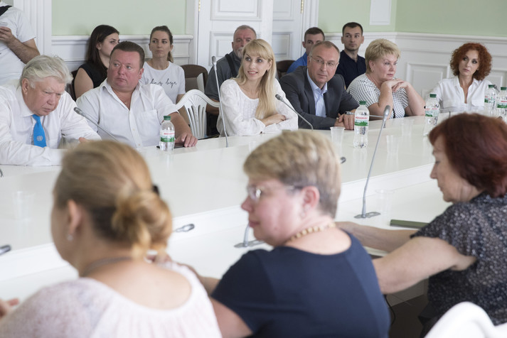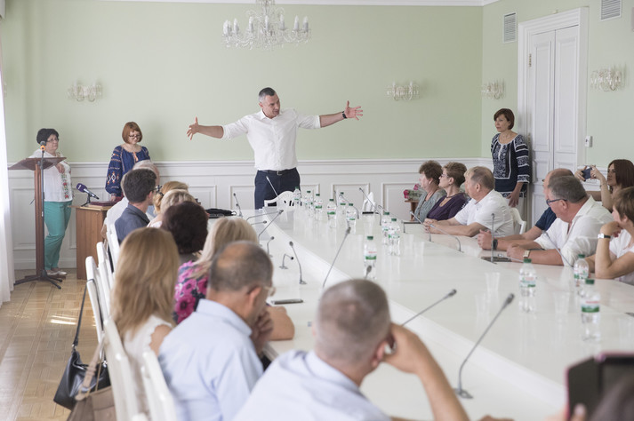 «Напередодні Дня Державного Прапора та 28-ї річниці незалежності України я радий вітати в цій залі киян, які своєю працею втілюють зміни в нашому місті, вкладають свій час, енергію в освіту молоді, дбають про розвиток мистецтва та культури», - сказав Кличко.