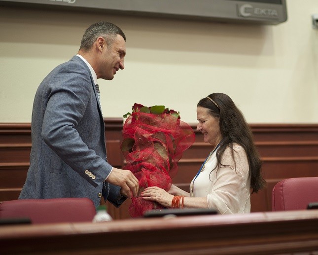 Мер Києва Віталій Кличко вручив відзнаку про присвоєння звання «Почесний громадянин Києва» українській співачці Ніні Матвієнко.