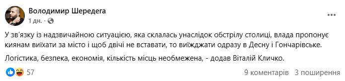 Кличко закликав виїхати з міста. У соцмережах бурхливе обговорення