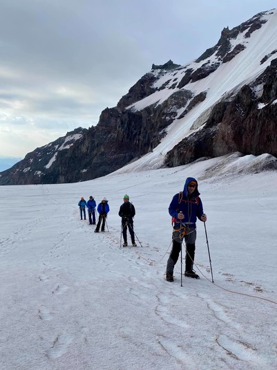 «В перший день акліматизації, ми піднялися від Стефанцмінди, до льодовика Ґерґеті, через перевал Саберце, набравши 1500 вертикальних метрів. Наступного дня група піднялася в гірську хату Altihut 3014, яка стала нашим штурмовим табором. Звідси нами було заплановано ще два акліматизаційних виходи – на перевал Орцвері, і на так зване Нижнє плато, на висоті 4300 м. Та прогноз погоди дуже обмежував нас у часі. Тому ми обмежилися одним виходом до Нижнього плато, та днем відпочинку перед штурмом», – розповів Гапко.