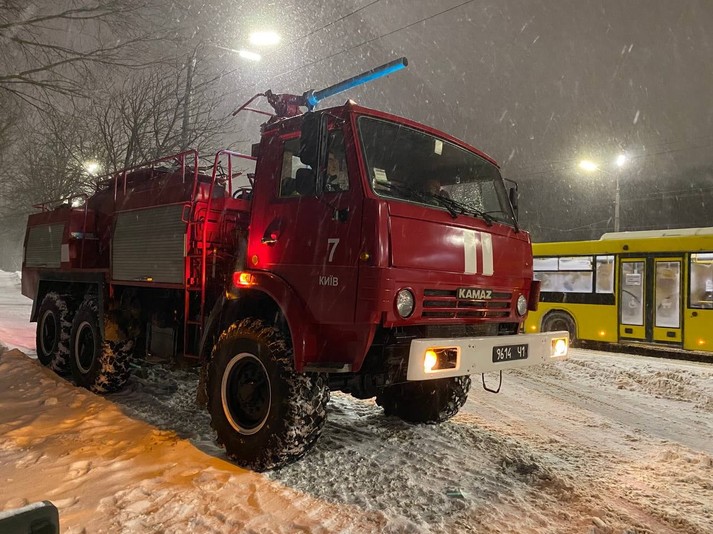 На столичних дорогах від Головного управління ДСНС у Києві чергують два спеціальні автомобілі підвищеної прохідності. Вони задіяні на ділянках доріг, де можливе ускладнення руху транспорту: на вул. Олени Теліги та на вул. Академіка Заболотного.