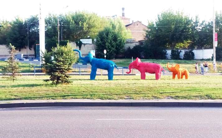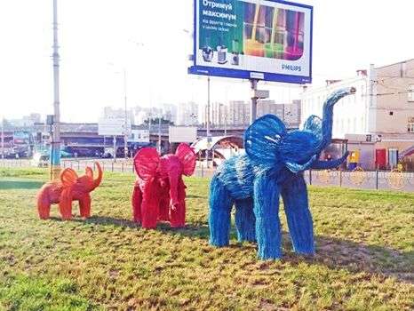 «Слоненята виготовлені працівниками КП УЗН Голосіївського району та змонтовані на Деміївській площі (на транспортному розподільнику на розі просп. Лобановського). Дана композиція створена, щоб наповнити яскравими барвами міський простір та покращувати настрій містянам!» - розповіди зеленбудівці.