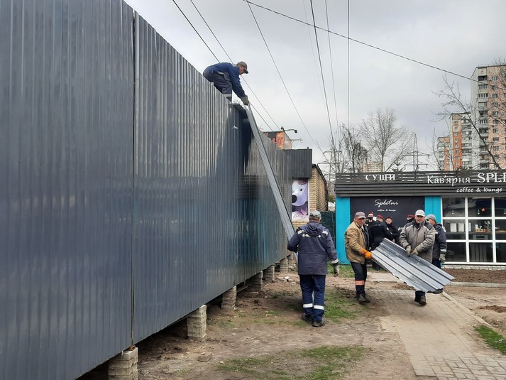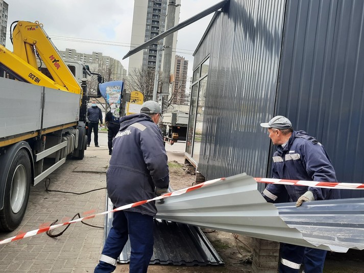 У вівторок, 20 квітня, комунальники демонтували на проспекті Правди, 66 у Подільському районі Києва габаритну тимчасова споруда. Про це повідомив в.о. директора комунального підприємства «Київблагоустрій» Микола Бойко на своїй сторінці у Facebook.