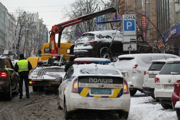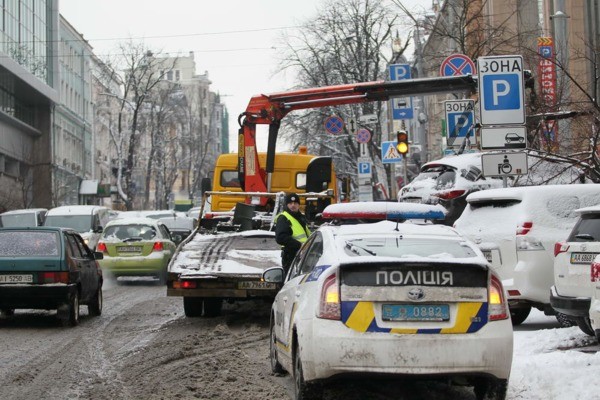 Столичні комунальники евакуйовують автомобілі, які заважають розчищати дороги від снігу.