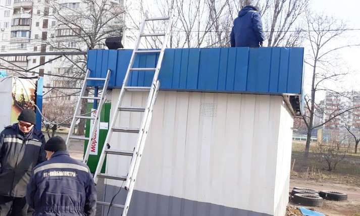 Протягом 10-12 лютого комунальним підприємством «Київблагоустрій» та деякими власниками тимчасових споруд було прибрано 54 незаконних МАФів.