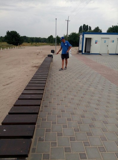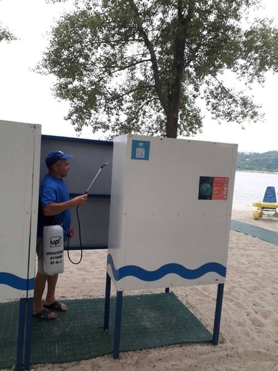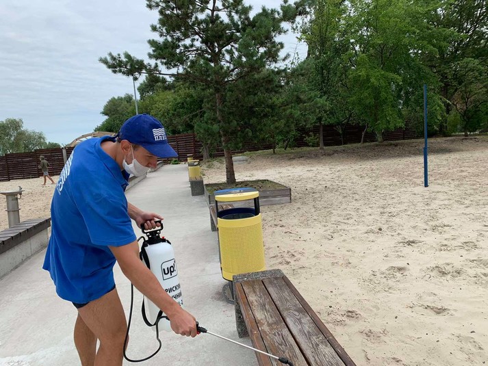 Для запобігання поширенню коронавірусу працівники комунального підприємства «Плесо» здійснюють дезінфекцію пляжів Києва. Щодня працівники обробляють 13 тис. кв. м.