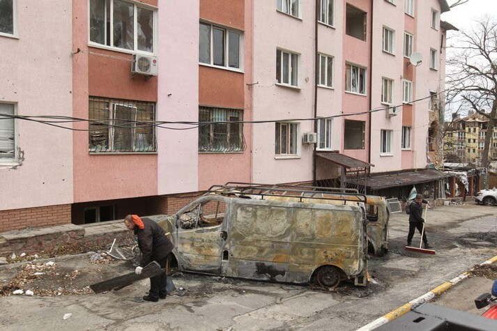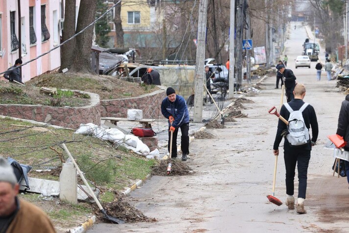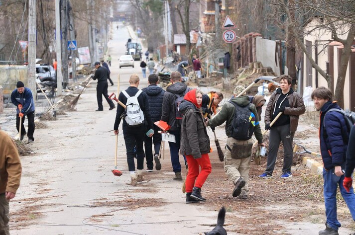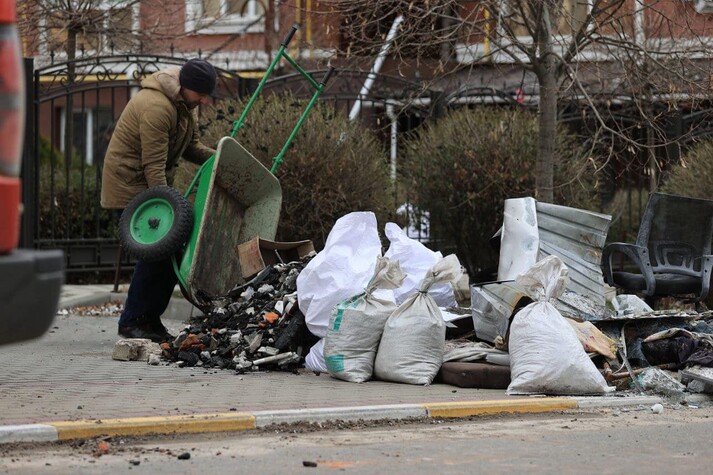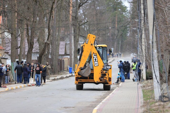 6 квітня комунальні служби Ірпеня та волонтери розпочали прибирання вулиць міста від наслідків варварських дій російських окупантів. Про це повідомив мер Ірпеня Олександр Маркушин на своїй сторінці у Facebook.