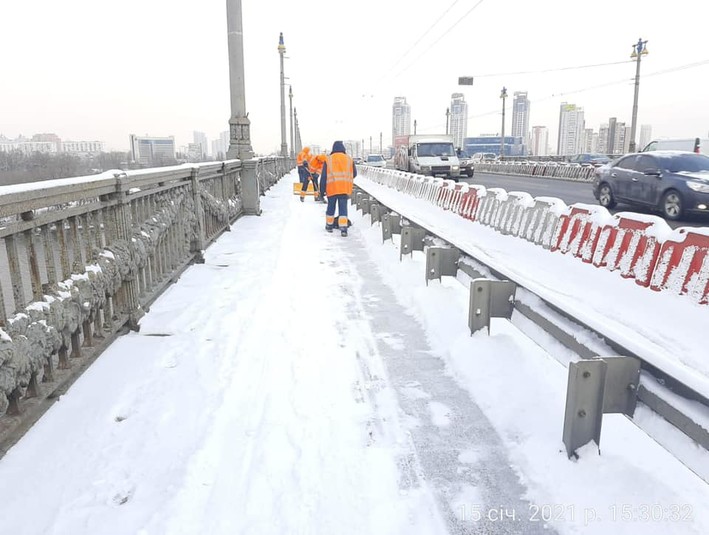 Станом на ранок 16 січня дороги та тротуари чистили 5018 комунальних працівників шляхово-експлуатаційних управлінь, житлово-комунального господарства та управлінь зелених насаджень. До робіт залучено 468 одиниць снігоприбиральної техніки, використано 3,349 тис. тонн посипального матеріалу.