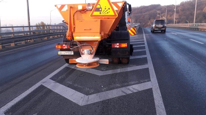 Сьогодні, 1 листопада, столичні дорожники розпочали обробку доріг антиожеледними засобами. Працювали на мостах, спусках і підйомах. Про це повідомляє комунальна корпорація «Київавтодор».
