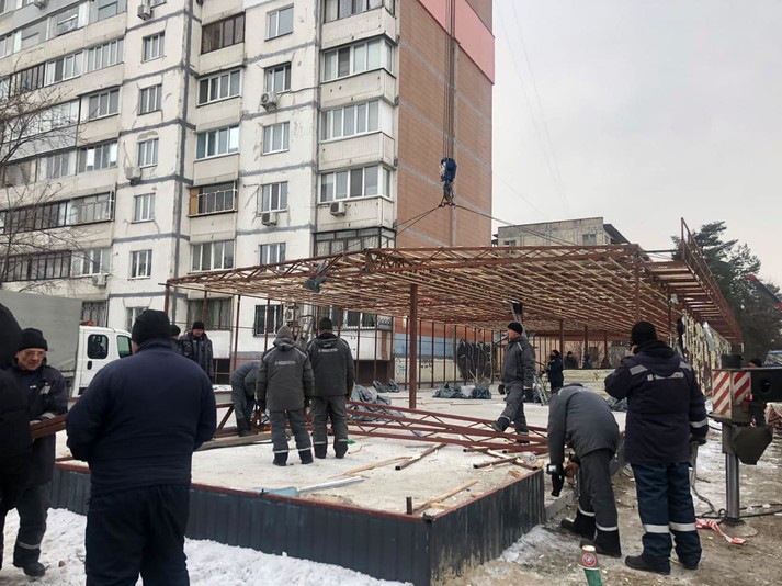 28 грудня працівники комунального підприємства «Київблагоустрій» розпочали демонтаж гігантського МАФа на вул. Миропільській, 29 у Дніпровському районі Києва, що був незаконно встановлений у ніч на 28 листопада.