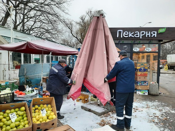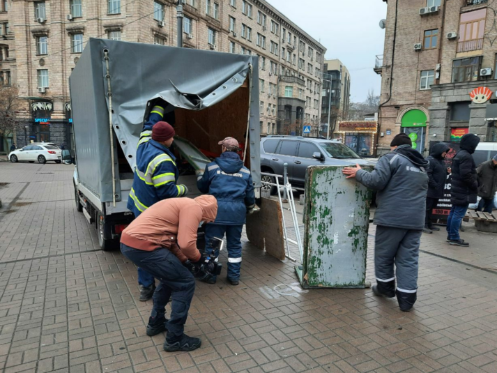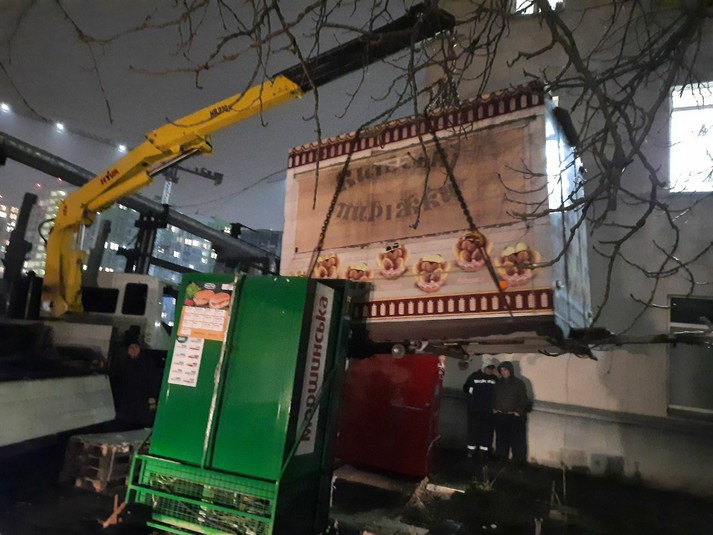 Працівники КП «Київблагоустрій» внесли 10 приписів власникам нововстановлених об’єктів та демонтували 32 торговельні намети, засоби пересувної торгівлі та інші елементи, власники яких на вимогу попередньо внесених приписів не відреагували та самостійно не демонтували встановлені об’єкти.