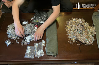 «Під час слідчих дій у фігурантів було виявлено та вилучено близько 10 кг ювелірних виробів із золота та срібла – сережки, персні, ланцюжки, кільця, підвіски, декілька одиниць вогнепальної зброї з бойовими набоями до неї без дозвільних документів, а також осколково-фугасні снаряди до важкої техніки та інше», – розповіли у ДБР.