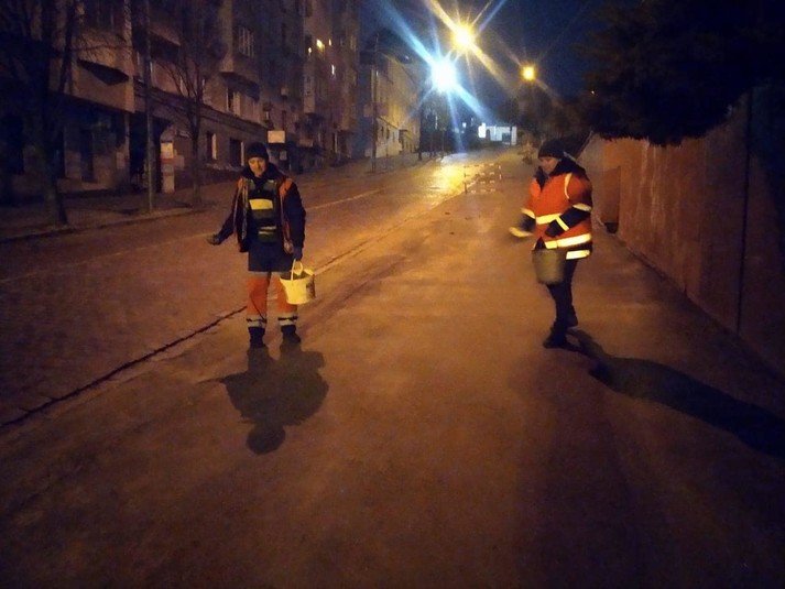 Першочергово обробляють мости і шляхопроводи, підйоми і спуски, вулиці з бруківки, тротуари, сходи підземних переходів.