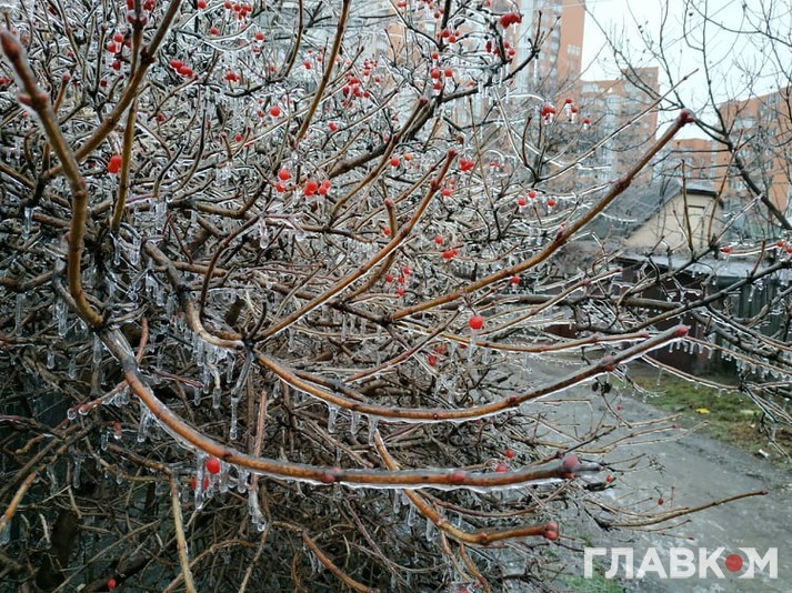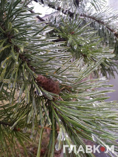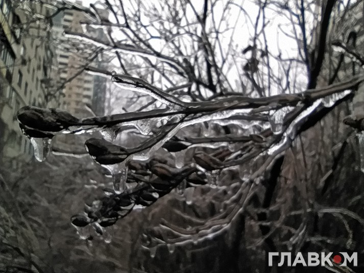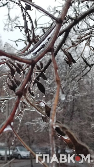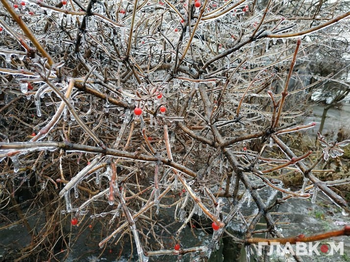 Кіркою льоду покрилися дерева, кущі та інша рослинність. Тепер кожна травинка та гілочка дерев ніби під склом.