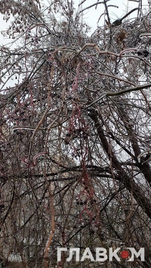 Як повідомлялося, деякі дерева не витримують обледеніння. Вже зафіксовано декілька падіння дерев через погодні умови.