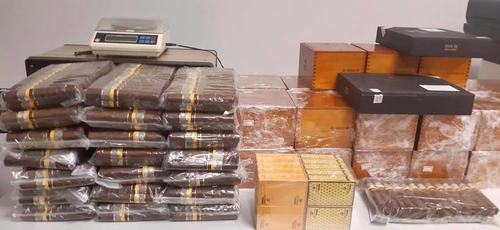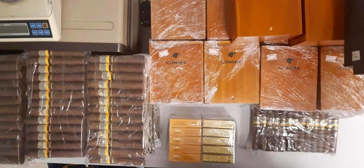 Під час проведення митного контролю інспектори Київської митниці виявили у їх валізах 5831 сигару та 717 упаковок дорогих гомеопатичних препаратів. Це виявились сигари різних виробників, фасованих як у презентабельні лаковані дерев‘яні коробки з сертифікатами так і в поліетиленові, пластикові та картонні упаковки. Зокрема, це преміум-сигари ручної скрутки брендів Montecristo, Cohiba, Trinidad, Bolivar, вартість упаковки з 10-25 сигар яких в Україні коштує в середньому 6-9 тис. грн.