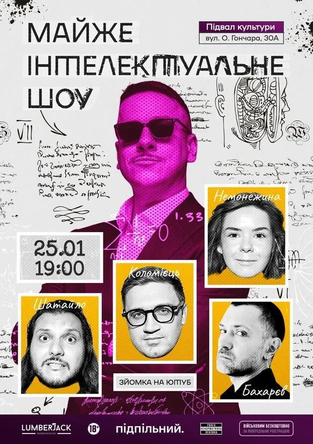 «Майже Інтелектуального Шоу» – класичний формат QI від «Підпільного стендапу: тут коміки відповідають на інтелектуальні питання ведучого – правильно або смішно. Ведучий – Свят Загайкевич, засновник «Підпільного стендапу», амбасадор анекдоту про стоматологів, його виступи неможливо забути, один із королів крінжу.