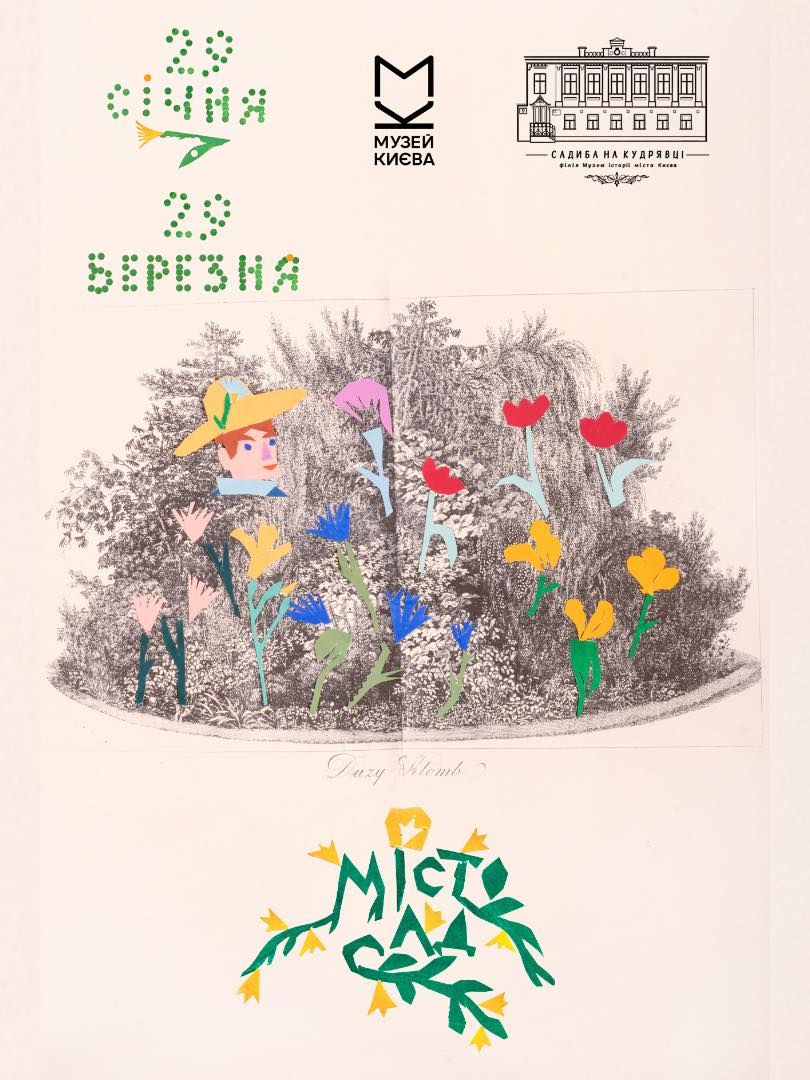 Сучасні аплікація, графіка, меблі, текстиль, шпалери, цифровий арт митця Design studio Litvinenko поєднується в одному просторі із старовинними фото, унікальними книгами з ботаніки, документами, листівками, порцеляною, одягом, предметами інтерʼєру та декоративно-ужитковими елементами з фондів Музею Києва, що розповідають історію міських садів і передають дух епохи.