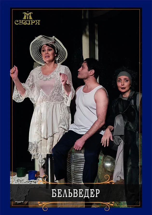 У Театрі «Сузір’я» відбудеться вистава «Бельведер» за трагікомедією українського драматурга Анатолія Дьяченка. Це історія жінок, які живуть в чудовому будинку на березі моря. Весь час вони говорять про своє минуле та сьогодення сповнене самотності. Аж поки в їх будинку та в їх житті не з’являється чоловік. Точніше, труп чоловіка. А зрештою, не такий вже труп. І значить, все стає цікавіше і цікавіше! А особливо, коли у ролі «трупа» відомий актор Ахтем Сеітаблаєв.