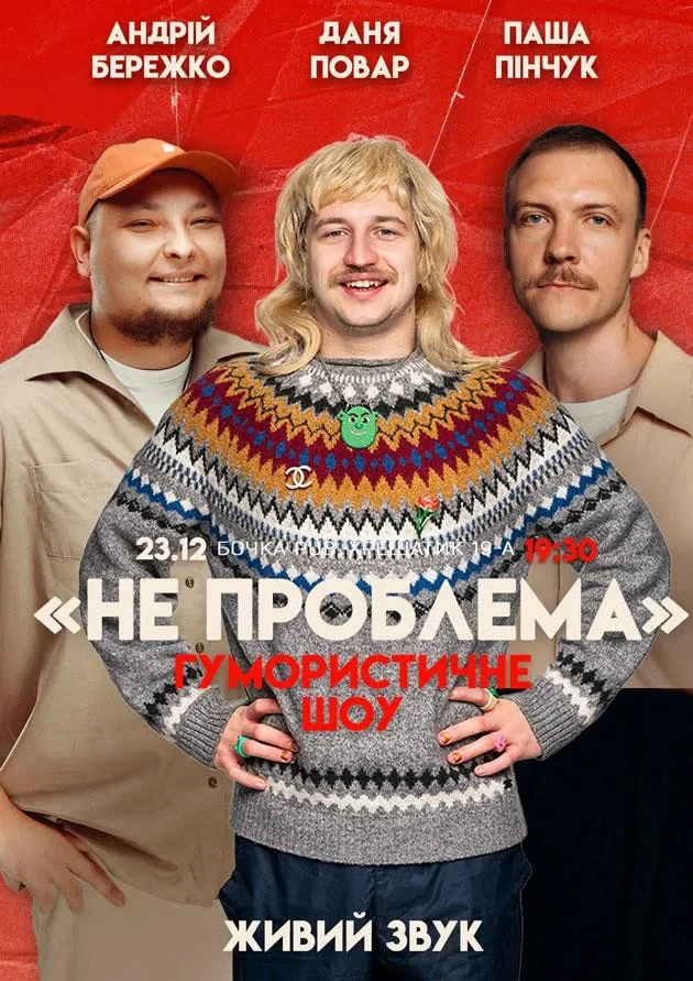 Комедійне шоу, де ваші проблеми стануть джерелом сміху та гарного настрою. Коміки не тільки вислухають ваші життєві негаразди, але й знайдуть їм найнесподіваніші та найсмішніші вирішення. Чи це любовні пригоди, труднощі на роботі, чи просто курйозні ситуації – готуйтеся сміятися до сліз, адже всі проблеми зникнуть під натиском гумору.