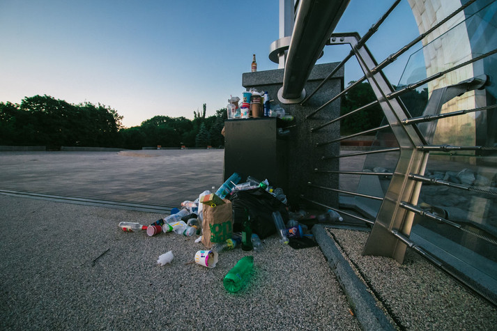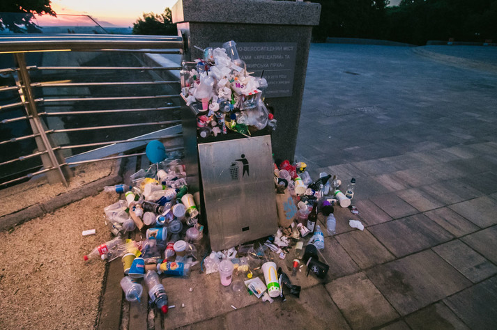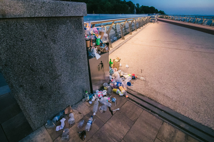 Кияни та гості міста залишаютьпісля себе на мосту завалені сміттям урни
