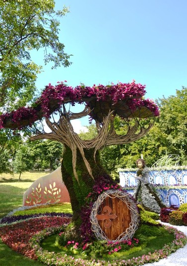 Квіткова виставка, яка розповідає про героїв улюблених мультфільмів, відкрилася 14 серпня. Вона складається з 10 головних історій, до яких веде центральна алея з фотозонами. Загалом для створення експозиції було висаджено майже 350 тисяч квітів. Використано різні інертні матеріали, зокрема, встановлено металеві каркаси, дерев’яні елементи, фанерні конструкції і навіть елементи з глини.