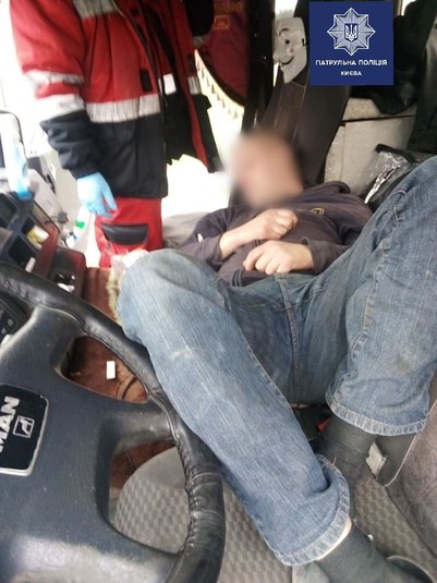 Патрульні виявили в кабіні вантажівки чоловіка, який не реагував на звернення, але з ознаками життя. Інспектори викликали бригаду швидкої, яка прибула на місце і допомогла привести чоловіка до тями. Про це повідомляє Патрульна поліція Києва.