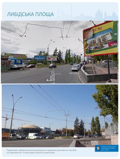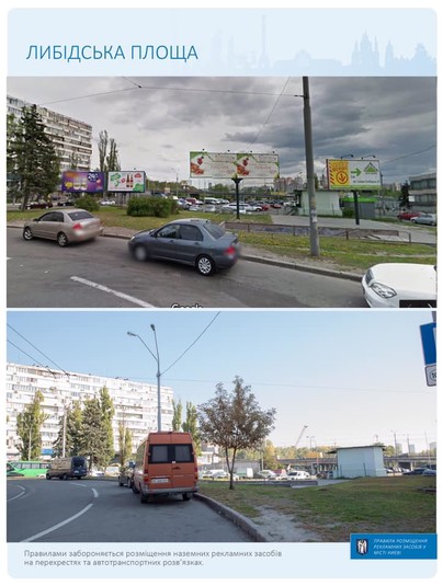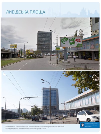 «На Либідській площі було встановлено 78 рекламних засобів, загальною площею 1908 (!) квадратних метрів. На сьогодні – жодного», - повідомив Смирнов.