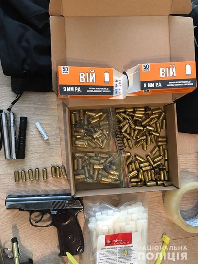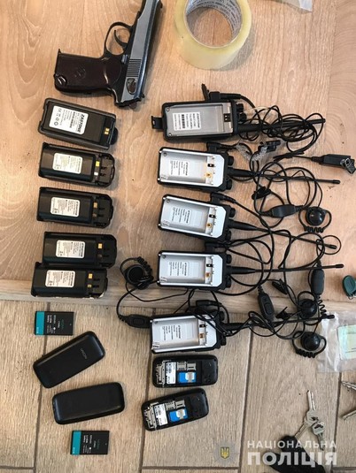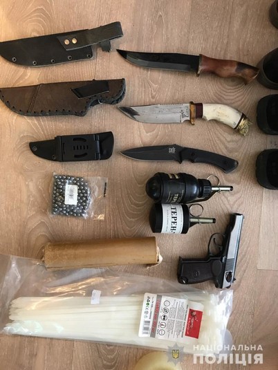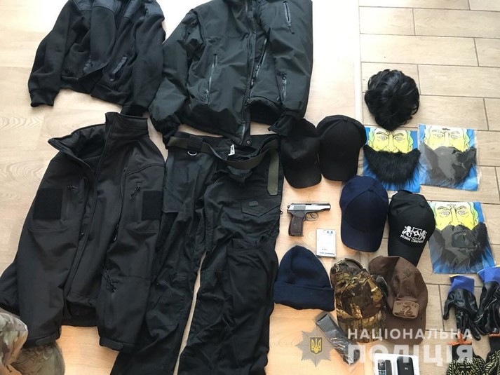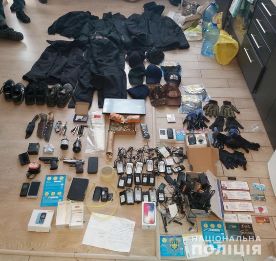 Під час проведених 18 невідкладних обшуків за місцем проживання фігурантів працівники поліції виявили та вилучили велику кількість різноманітної зброї, гранати, глушник, рації, пластид, димові шашки, щоб прикривати шляхи відходу, а також перуки, пластикові стяжки, кастети, ломи, мобільні телефони, банківські картки, резинові рукавиці, вартісні інструменти, обладнання, таке як телескопічні драбини і палиці, наркотичні речовини.