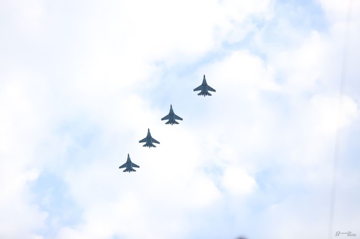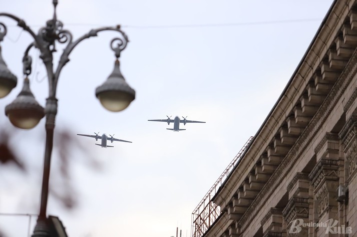 Кияни та гості столиці, які перебували поблизу Хрещатика, спостерігали за майже нескінченною колоною військових та за польотом вертольотів і літаків, зокрема, грандіозного Ан-225 «Мрія». Про це повідомляє «Вечірній Київ».