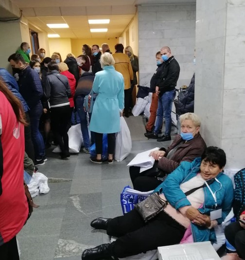 Люди лежать і сидять на підлозі: як у Києві здають протоколи виборів (фото)
