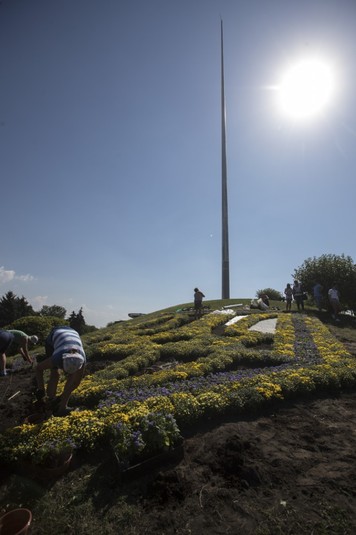 «Зовсім скоро над київськими пагорбами замайорить найбільший, головний прапор України. Фахівці вже завершили спорудження флагштока висотою майже 90 метрів. А важить він 32 тонни. Розмір полотнища прапору -16 на 24 метри», - повідомив мер.