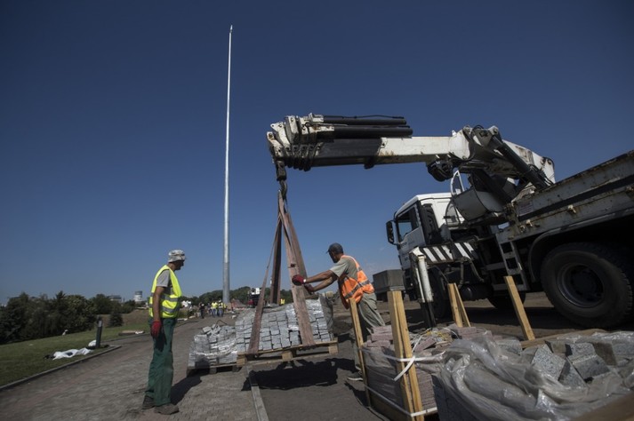 Кличко опублікував відео з будівельного майданчика, де встановлюють флагшток.