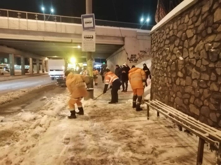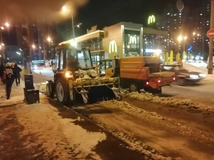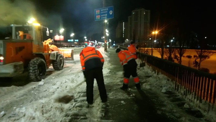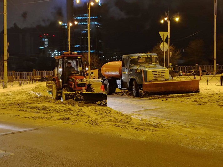 Вночі над очищенням від снігу й обробкою вулиць і тротуарів протиожеледними засобами працювали 304 одиниці транспорту, а також 40 бригад з ручного прибирання.