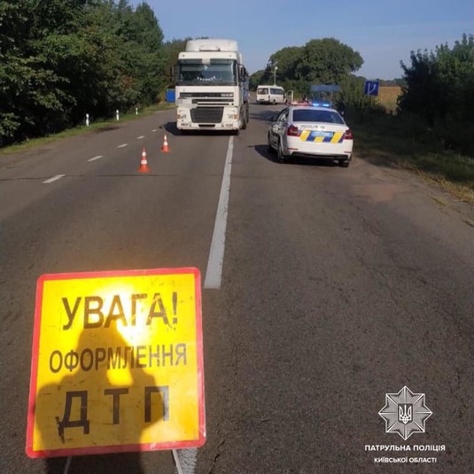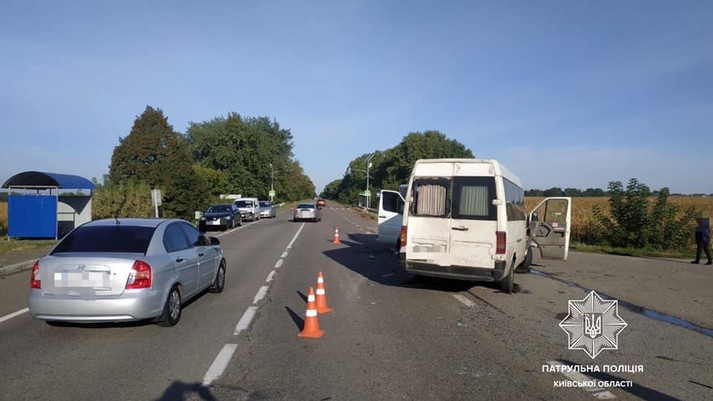 Під Києвом, на трасі у напрямку Переяслава, зіткнулися одразу декілька транспортних засобів: фура, легкове авто та два мікроавтобуси. Під час аварії постраждали люди. Про це повідомляє пресслужба Патрульної поліції Київської області.