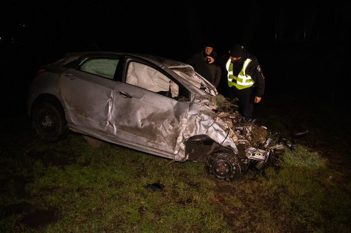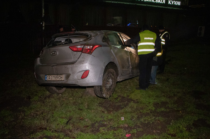 Як розповів патрульний Святошинського району, всі учасники ДТП рухалися по проспекту Перемоги в бік виїзду з міста. Спочатку сталася ДТП за участю автомобіля Hyundai Elantra. Легковик виїхав за межі проїжджої частини і почав перекидатися. Машина пролетіла так близько 300 метрів. З салону вилетіли водій і дівчина-пасажир. Осколки і частини Elantra розкидало по узбіччю і проїжджій частині.