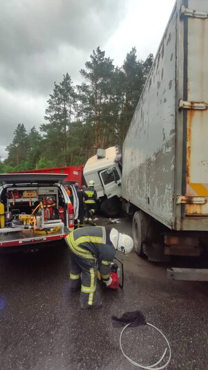 Водія МАN затисло в кабіні і його в подальшому деблокували рятувальники. Нині чоловіка з ушкодженнями середньої тяжкості доставили до лікарні.