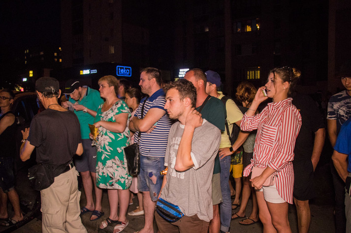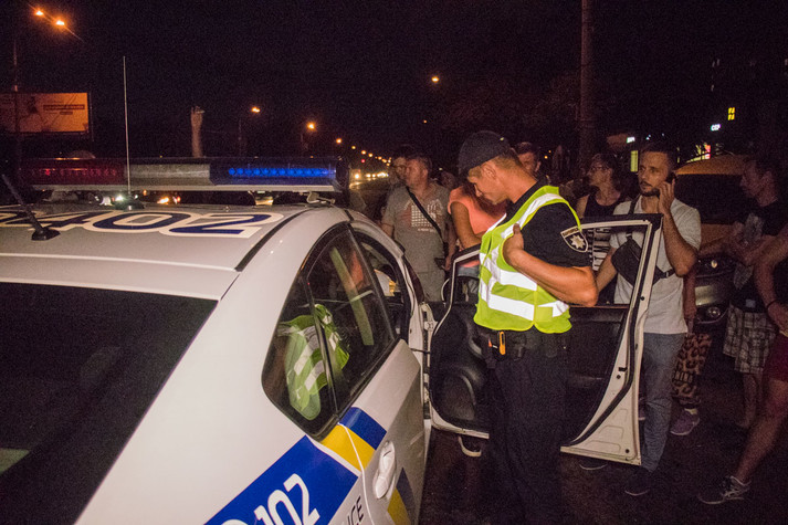 Патруль посадив водія до службового авто, після чого громадяни почали кидатись на авто. Одного з найактивніших було затримано.