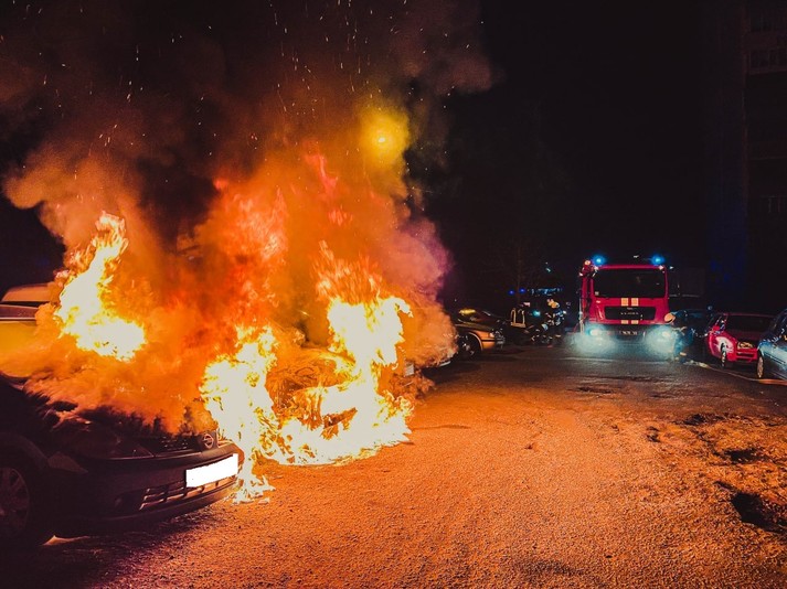 На місце рятувальники встановили, що у дворі 10-поверхового житлового будинку у припаркованому автомобілі Volkswagen Caddy виникла пожежа з розповсюдженням на поруч розташовані автомобілі Nissan Tiida та Honda CR-V.