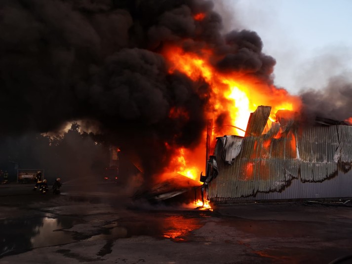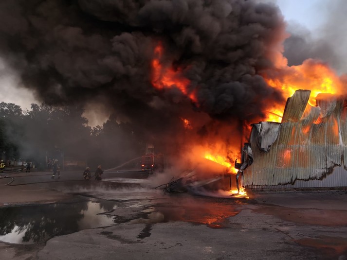 Усього площа складів становить 3 тис. 500 кв. м. Жертв та потерпілих немає. Загрози перекидання на сусідні будівлі немає, зазначили у ДСНС.