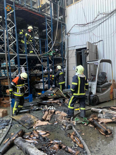 Рятувальники встановили, що загорання виникло в середині складського приміщення, де зберігалися будівельні матеріали.