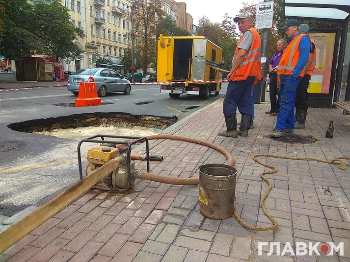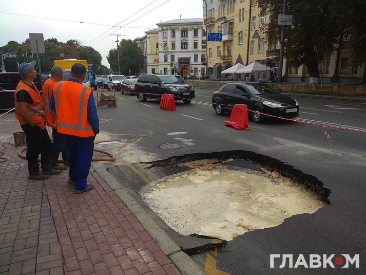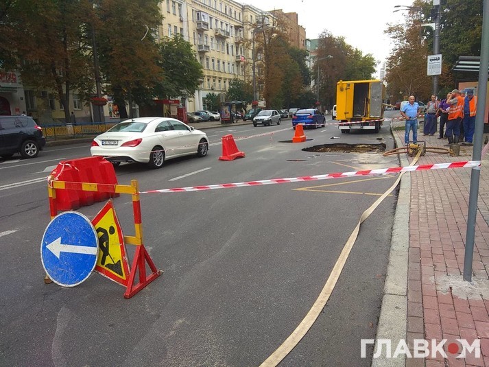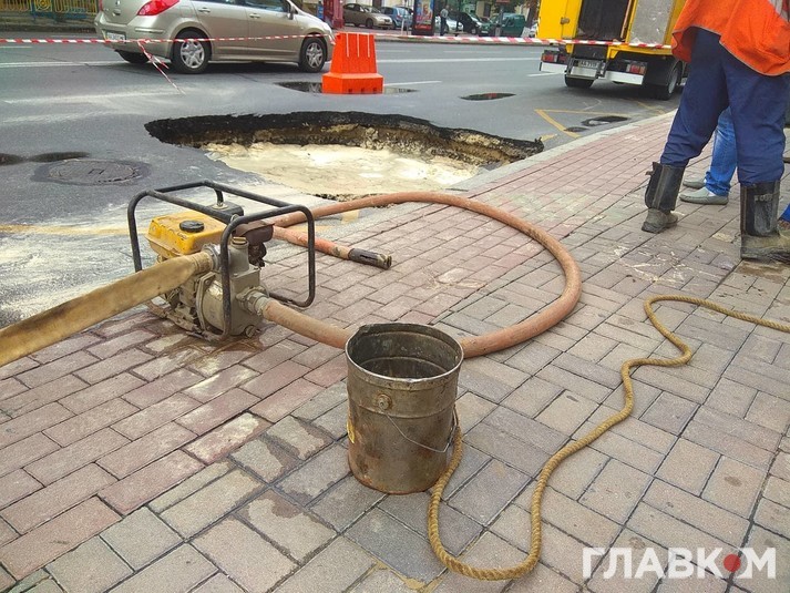 Частину дороги, де сталося провалля, обгородили обмежувальною стрічкою. На місці працюють аварійні бригади «Київводоканалу» і представники «Київпастрансу».