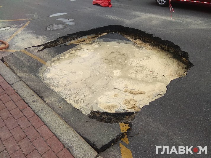 На дорозі біля готелю «Салют» утворилося велике провалля