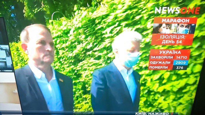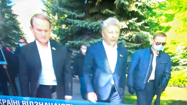 Трансляцію ходи здійснювали канали, що в так званий пул Медведчука. Поруч з Медведчуком його соратники з ОПЗЖ. Усі без масок.