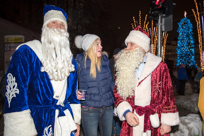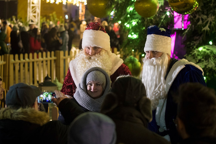 Брати Клички в костюмах Дідів Морозів відвідали і Різдвяне містечко на Софійській площі, поспілкувалися та пофотографувалися з дітьми і дорослими.