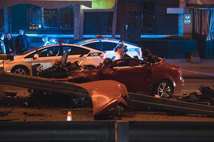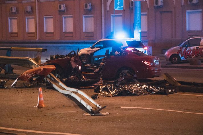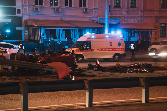 Машина рухалася по вулиці Набережно-Хрещатицькій в напрямку Річкового вокзалу. За попередніми даними, водій не впорався з керуванням автомобіля і влетів в залізну конструкцію відбійника. Його особа встановлюється слідчо-оперативною групою.