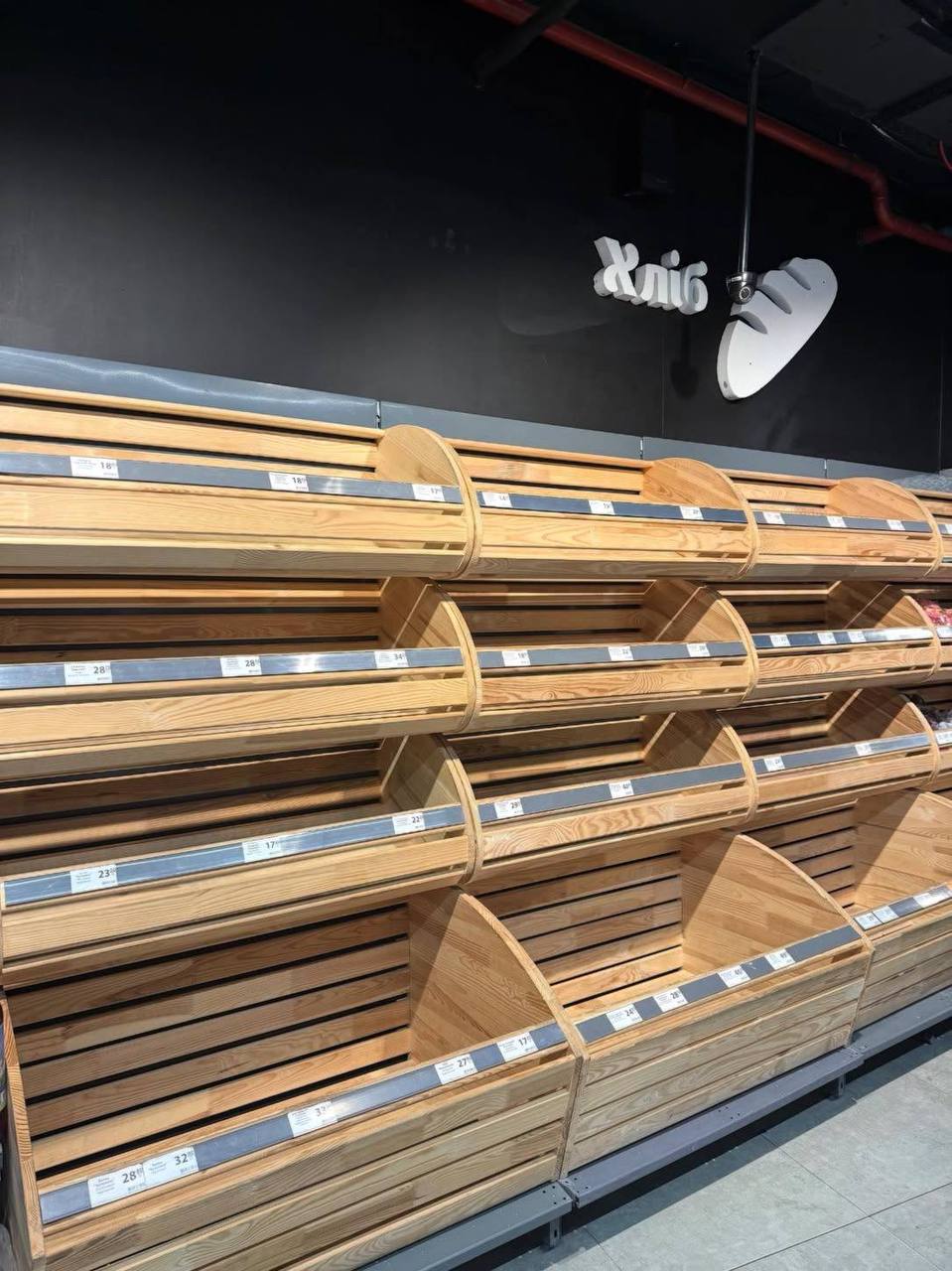 У соцмережах поширюються кадри з порожніми хлібними відділами. Водночас у мережі пишуть, що загальна ситуація в більшості супермаркетів залишається стабільною, а десь полиці можуть бути порожні, оскільки окремі магазини працюють з перебоями або не встигли поповнити запаси.